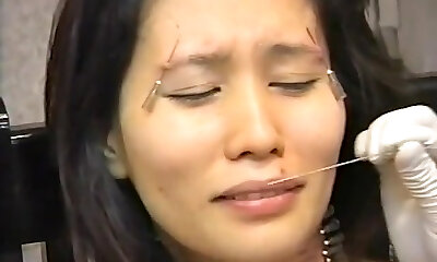 Jap BBW victim got needles pierced lip to keep her gullet shut