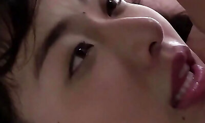 Horny Asian damsel sucks and fucks with a friend until he cums