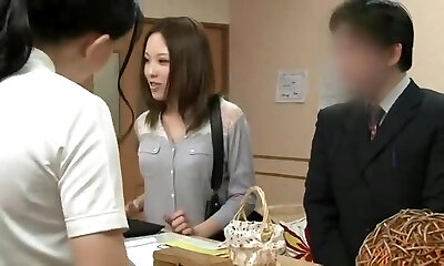 Naughty Horny Patient Won't Leave His Pretty Shy Asian Nurse Alone, Until She Blows His Shaft