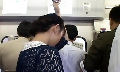 Concupiscent passenger manhandles sexy honey in public