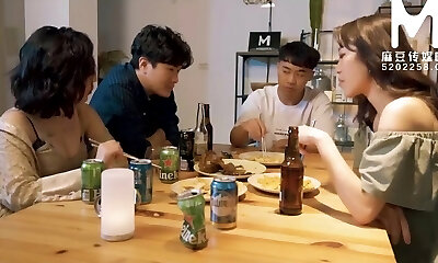 Hot Foursome Sex! Asian Couple Swap! No Condom, Internal Cumshot